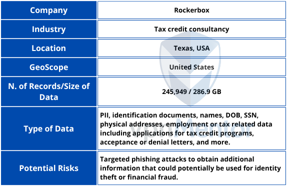 Information contained in the internal files indicated the records appeared to belong to a Texas-based company called Rockerbox. This is a tax credit consulting company that helps businesses to increase their cash flow by identifying and managing employer-focused tax incentives through programs like the Work Opportunity Tax Credit (WOTC), Employee Retention Tax Credit (ERTC), R&D credits, and Empowerment Zone credits. Based in Dallas, with clients from all over the United States.