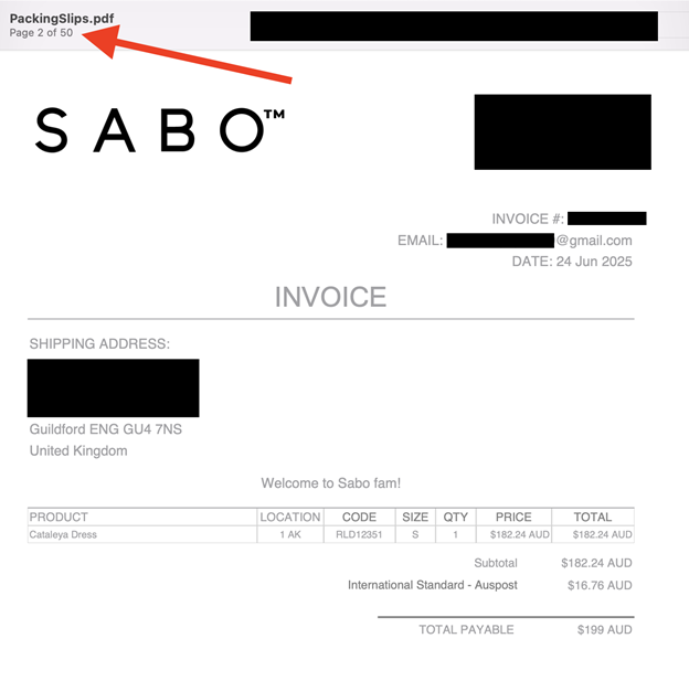 The publicly exposed database was not password-protected or encrypted. It contained 3,587,960.pdf documents with a total size of 292 GB. In a limited sampling of the exposed documents, I saw personally identifiable information (PII) (including names, physical addresses, email addresses, phone numbers, and more) corresponding to what appeared to be retail and corporate customers. In one single PDF file, there were 50 separate order pages, indicating that the total number of potential customers is higher than the total number of PDF files in the database. The records appeared to belong to an internal document management storage system that is used to track sales and returns, as well as the corresponding domestic and international shipping documents. The file dates ranged from 2015 to 2025.